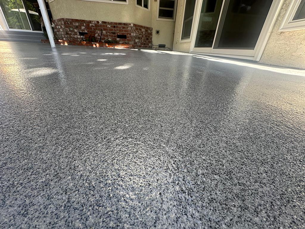 Quartz flooring is a high-performance broadcast system that combines colored quartz aggregate with a durable resin binder to create a textured, decorative surface. For interior applications, we install epoxy quartz flooring using 100% solids epoxy. For exterior environments, we use UV-stable polyaspartic systems to ensure long-term durability in the Los Angeles climate.